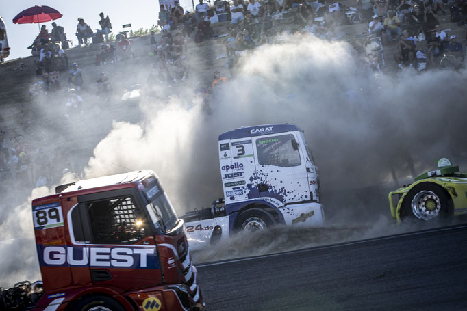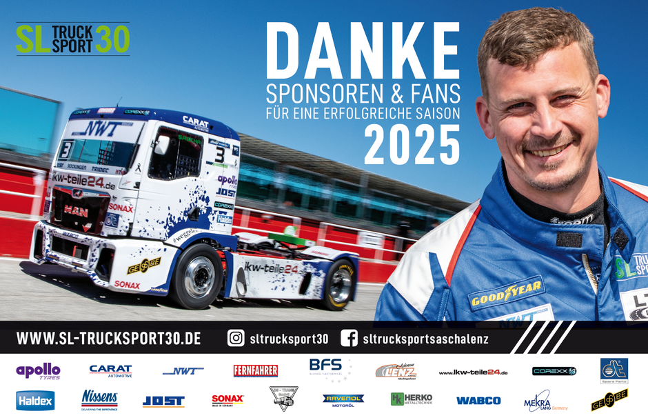 „Klar sind wir alle schon ein bisschen enttäuscht, dass es mit dem dritten Gesamtrang in diesem Jahr nicht geklappt hat. Meine herzlichen Glückwünsche gehen da aber natürlich an Steffi, mit der ich in vielen Jahren schon tolle Kämpfe auf der Strecke erleben durfte.“, gab Sascha am Sonntagabend zu Protokoll. „Aber insgesamt überwiegt wirklich die Freude. Anfang der Saison hatten wir mit dem neuen Truck noch einige Probleme, haben dann Stück für Stück Lösungen finden können und konnten in der zweiten Saisonhälfte nun wieder regelmäßig aufs Podium und in die erste Startreihe fahren. Auf diese geniale Teamleistung bin ich richtig, richtig stolz. Ein großer Dank geht natürlich auch an unserer Partner, Sponsoren und Fans, denn ohne Euren Support wäre solch eine Saison einfach nicht möglich gewesen.“