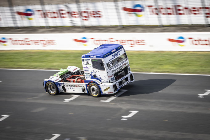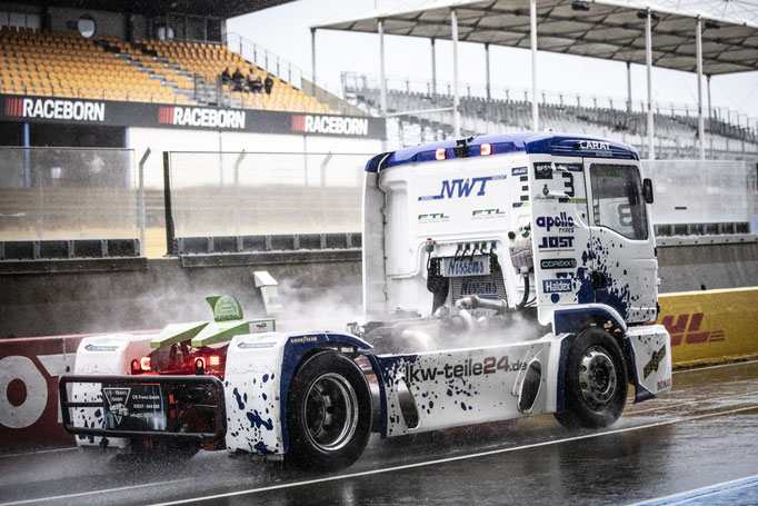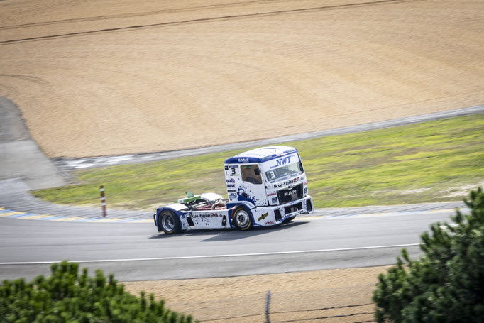 Ins Abschlussrennen des Wochenendes startete Sascha somit von Startplatz sechs. In einem harten Rennen wurde Sascha noch in der Anfangsphase komplett von der Strecke geschoben und fiel so einige Plätze zurück. Aber auch dadurch ließ sich der MAN-Pilot rein gar nicht aus der Ruhe bringen, fuhr weiterhin ein blitzsauberes Rennen und sah das Ziel am Ende auf dem fünften Rang.