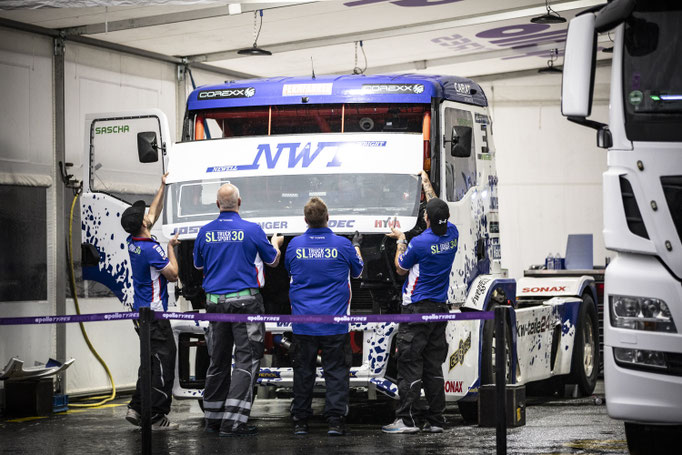 Während tausende Fans dann die Nacht zum Tag machten, ging es für das Team SL Trucksport 30 an den nächtlichen Service um auch für den zweiten Renntag wieder perfekt vorbereitet zu sein.