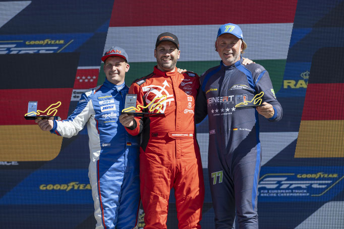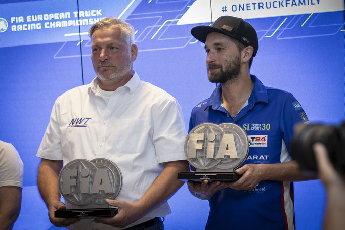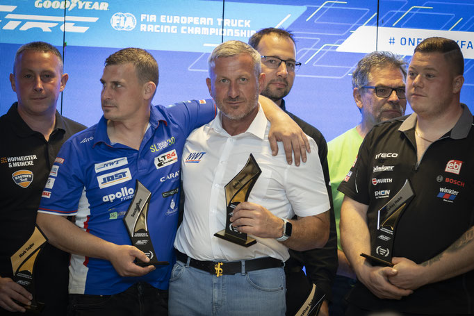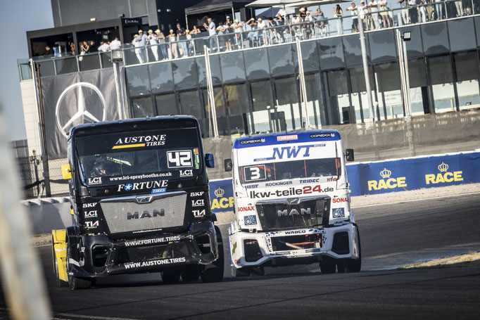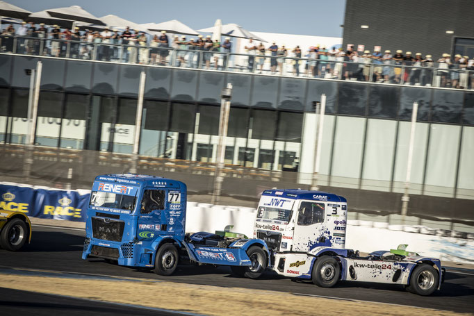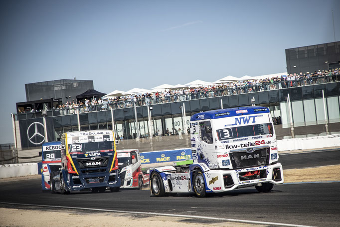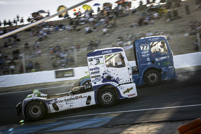 „Klar sind wir alle schon ein bisschen enttäuscht, dass es mit dem dritten Gesamtrang in diesem Jahr nicht geklappt hat. Meine herzlichen Glückwünsche gehen da aber natürlich an Steffi, mit der ich in vielen Jahren schon tolle Kämpfe auf der Strecke erleben durfte.“, gab Sascha am Sonntagabend zu Protokoll. „Aber insgesamt überwiegt wirklich die Freude. Anfang der Saison hatten wir mit dem neuen Truck noch einige Probleme, haben dann Stück für Stück Lösungen finden können und konnten in der zweiten Saisonhälfte nun wieder regelmäßig aufs Podium und in die erste Startreihe fahren. Auf diese geniale Teamleistung bin ich richtig, richtig stolz. Ein großer Dank geht natürlich auch an unserer Partner, Sponsoren und Fans, denn ohne Euren Support wäre solch eine Saison einfach nicht möglich gewesen.“